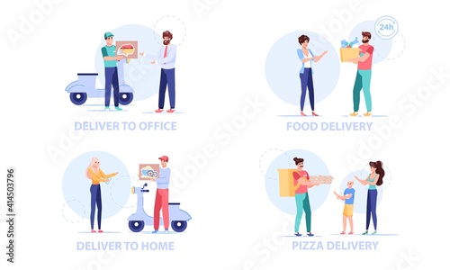 ピザと箱 開ける 出前 デリバリー 食べ物 ベクターイラスト