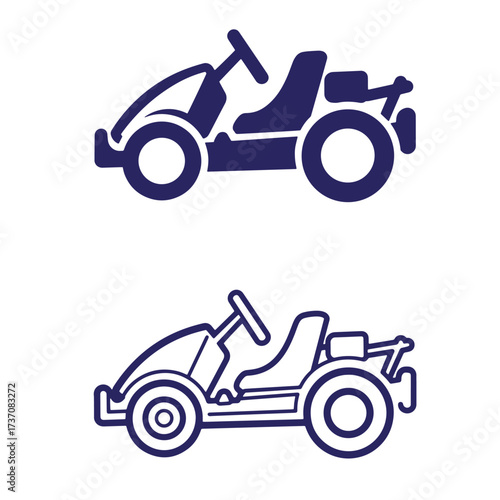 Go kart icon in filled, thin line, outline and stroke style. Vector illustration of two colored and black go kart vector icons designs can be used for mobile, ui, web