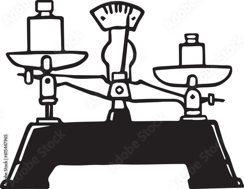分銅ののった秤のシンプルな線画アイコン、アイソメトリックイラスト