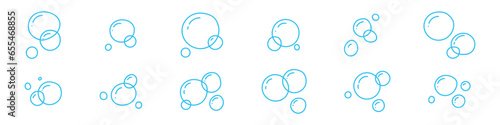 Soap Foam Bubbles Vector line Icon Set. Water drops. Soap foam, fizzy drink, oxygen bubble