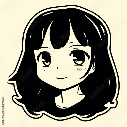 Illustration of a cartoon cat girl with black hair and yellow eyes on a white background centered view