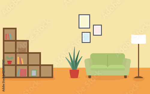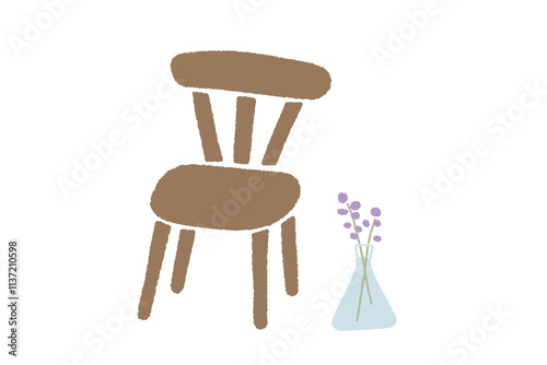 手書きのかわいいホームインテリアイラストのセット。ベクターデータで色替え変更可能。