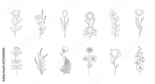 Anatomy of Biceps and Forearm Muscles Line Art Illustrations