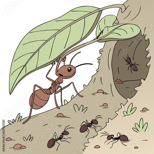 "Workers raking leaves outdoors, cleaning park or garden, seasonal maintenance, fall cleanup, outdoor labor, landscaping worker illustration"