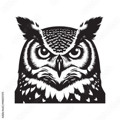 Simple Great Horned Owl Front View Vector Icon Design – Vintage Retro Logo & Illustration