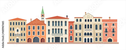 Collection of architectural items to build a typical scene of the Greek Islands and young tourist girl