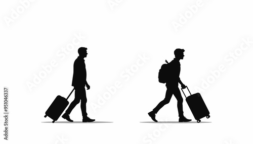 Travel Couple Silhouettes – Vacation, Cycling, Luggage, Map and Adventure Love Scenes