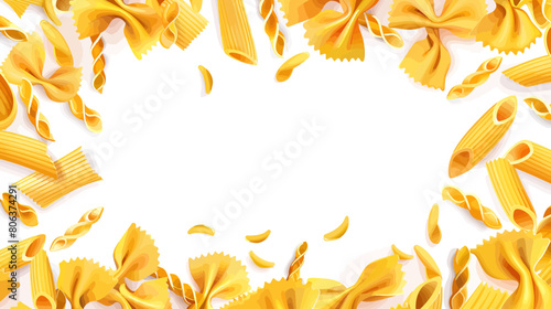 Illustration showcasing a variety of pasta shapes including elbow macaroni and farfalle types neatly arranged
