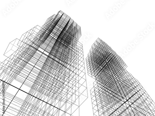 Abstract architectural background. Linear 3D illustration. Concept sketch. Vector