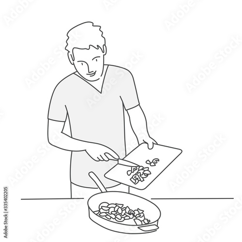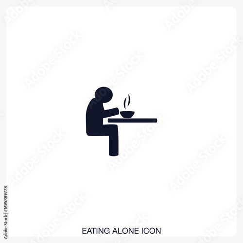 Young man standing alone in minimalist black and white vector illustration with contemplative mood, cool blue silhouette symbolizing loneliness on white background