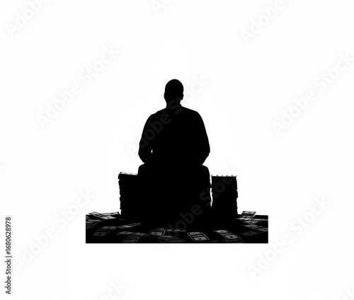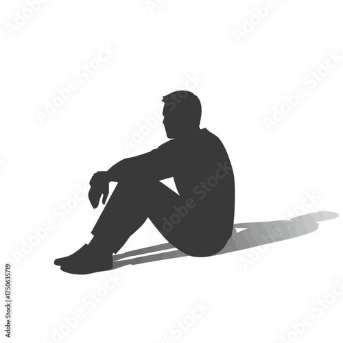 Contemplative man sitting alone in silhouette, conveying deep thought, introspection, or emotional reflection against a clean, bright backdrop