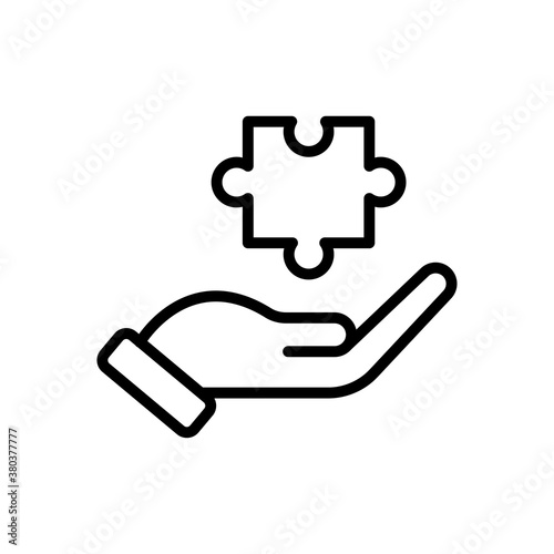 Vector puzzle icons. Editable stroke line icon set. Simple elements teamwork problem solving. Questions and answers decision making planning. Creative idea handshake search whole and particular