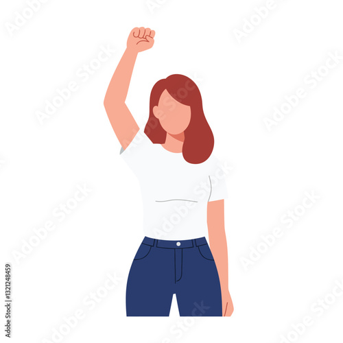 Woman holding equal rights sign during peaceful protest, flat vector illustration symbolizing humanity, gender equality, justice, empowerment, and civil rights advocacy