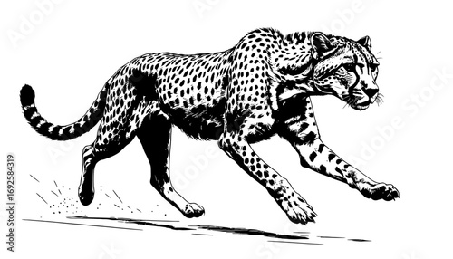 Dynamic cheetah in full stride, capturing the raw power and speed of the African savanna, ideal for wildlife projects, branding, and impactful visual storytelling, conveying motion.
