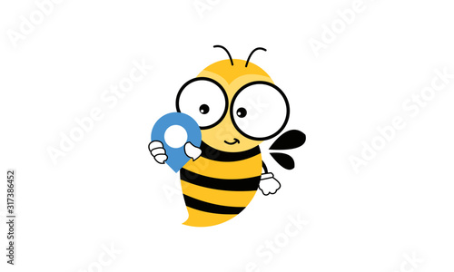 Funny Bee, Cute Bee and Honey Character Logo Vector