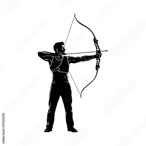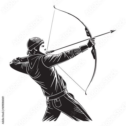 Vector art of a noble archer stands tall, bow drawn, arrow aimed, a symbol of strength, precision, and unwavering resolve, embodying the spirit of a true warrior