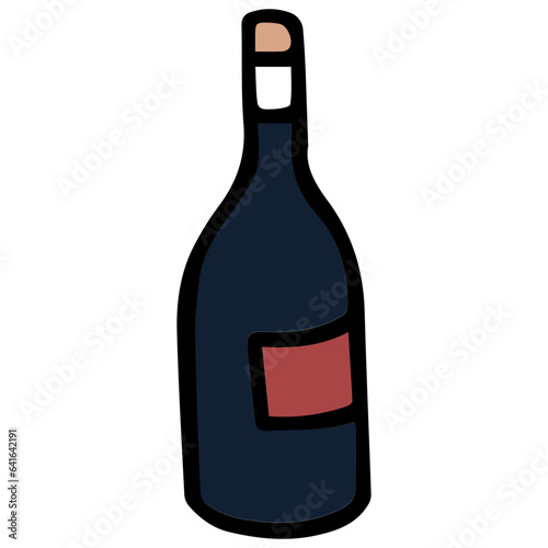 Stylized illustration of a dark red wine bottle with a cork and blank label