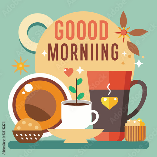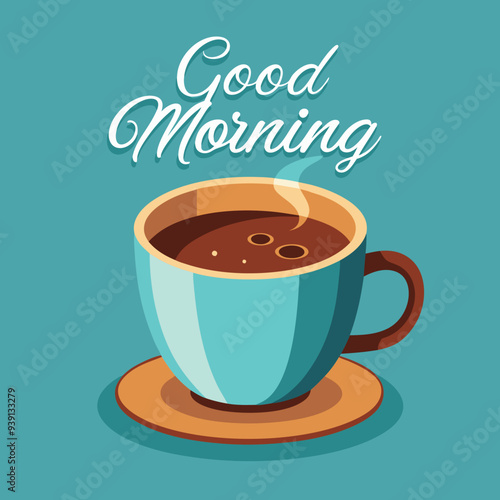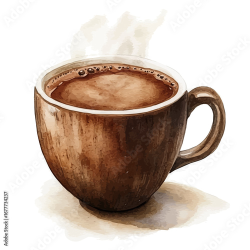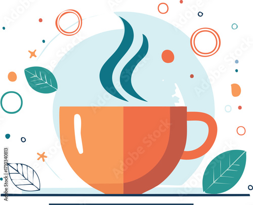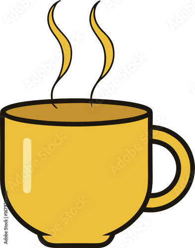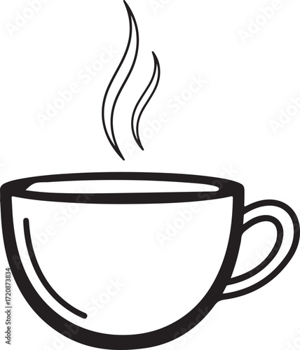 Clipart of a coffee cup with steam rising, representing a cozy coffee moment in a simple vector style..eps