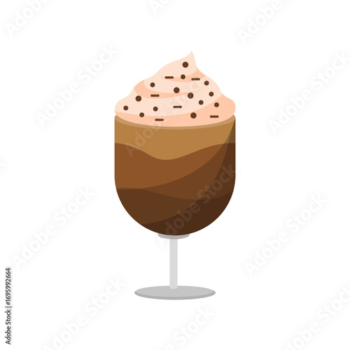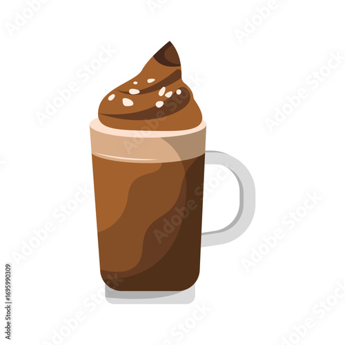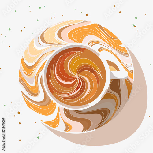 Top view flat illustration of a cappuccino with latte art heart and foam bubbles