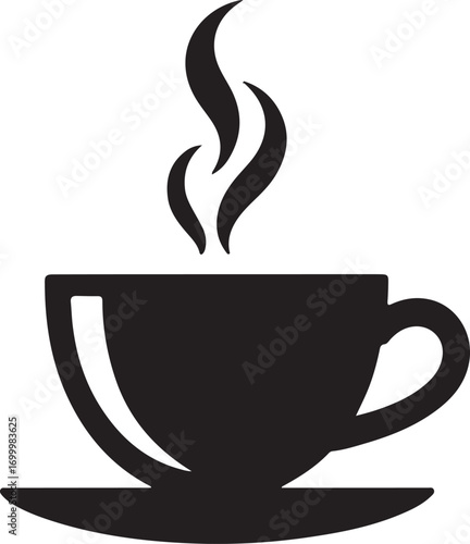 A clean and modern coffee cup icon design, perfect for café branding, coffee shop logos, menu design, mobile app UI, and web illustrations. Minimalist vector style with smooth lines and elegant detail