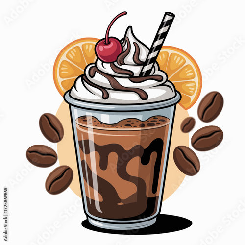 A Beautiful Collection of Various Coffee Drinks and Café Beverages Including Latte Art, Espresso, Frappe, and Takeaway Cups Vector Set