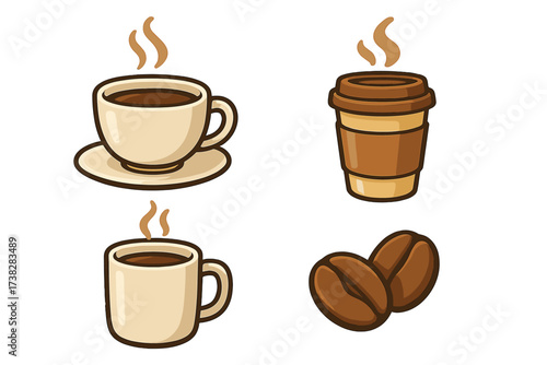 Coffee cups hot drinks beverage caffeine morning tea vector icon set