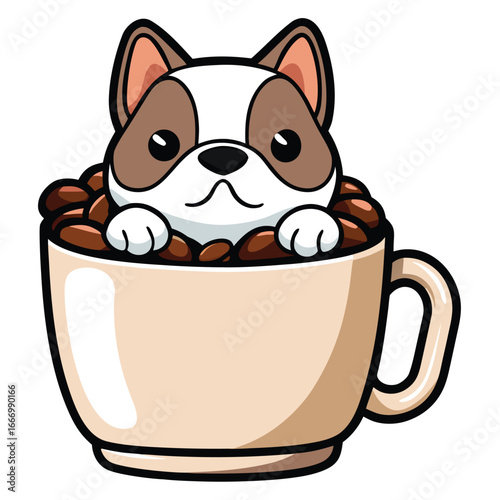 Cat Drinking from Coffee Cup Vector with Outline Isolated