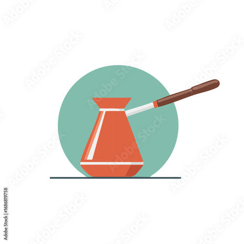 Coffee turk icon. Traditional cezve vector illustration. Antique brewing tool symbol. Copper espresso maker sign. Barista kitchen equipment concept.