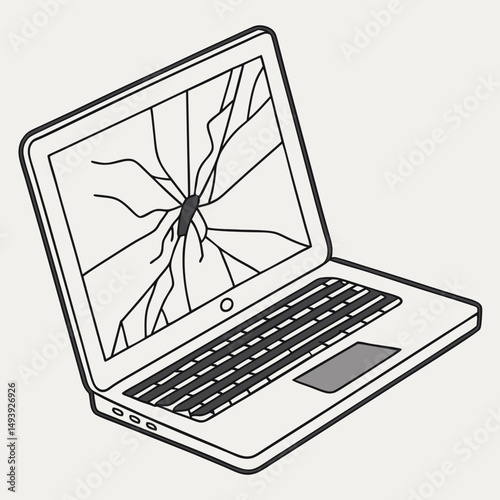 Broken laptop with sad smile. Broken laptop service, recovery and repair concept.