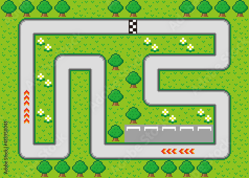Join a group of adventurers as you warm up for your workout by navigating through a virtual obstacle course in a deserted jungle temple.. Vector illustration