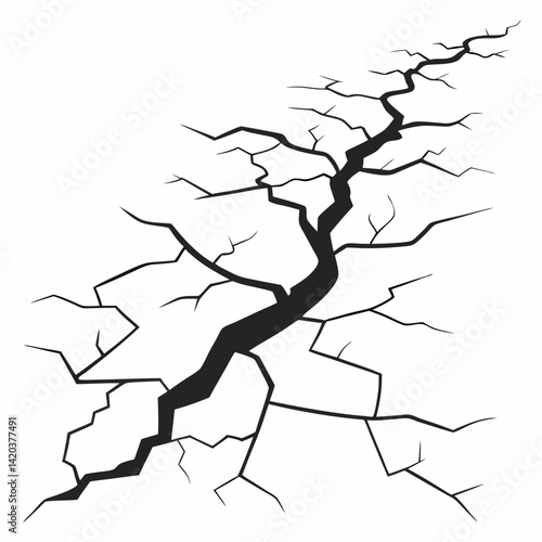 Cracked texture vector illustration with grunge lines and broken surface effect, distressed design element for backgrounds, overlays, wall texture, decay concept, and abstract graphic artwork
