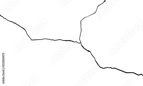 Surface crack and fissure in ground, concrete, Vector grunge cracked texture Transparent background.