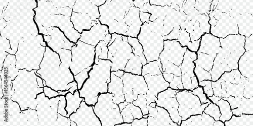 Sketchy cracked soil and desert design texture. Earth crack vector with dry details. Transparent background with wall crack effects.