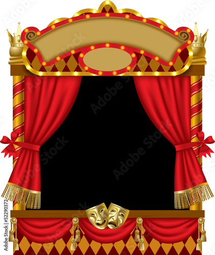 Photo booth machine with open and closed curtains set realistic vector illustration
