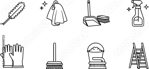 Broom Mop Vacuum Cleaner Dustpan Cleaning Spray Sponge Minimal Bold Line Icon