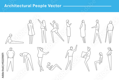 Architectural Drawings, people vector in park out door illustration, Minimal style hand drawn, set elements for architecture and landscape design. Sections, Elevations, Floor Plans.