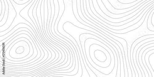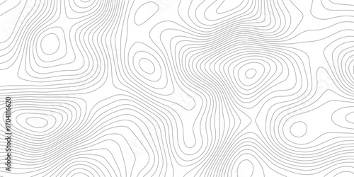Abstract cartography design with topographic elevation lines on white paper background and geographic contour patterns