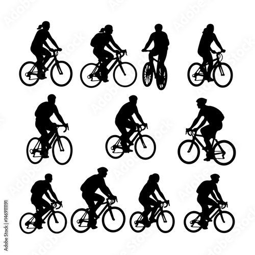 Hand Drawn Minimal Vector Illustrations of People Riding Bicycles for Architectural Use Including Urban Scene Figures for Floor Plans and CAD Layouts