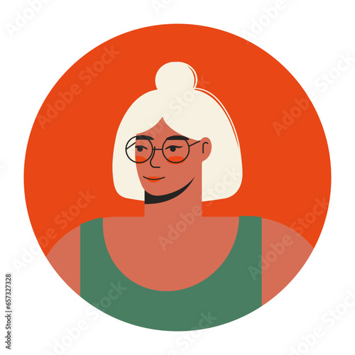 Young woman face portrait in circle. User profile, Cartoon character vector flat illustration.