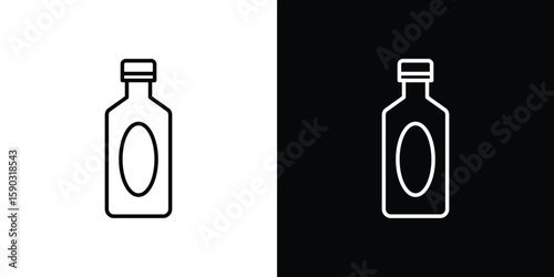 Gin Bottle Illustration, Black and White, Beverage Concept