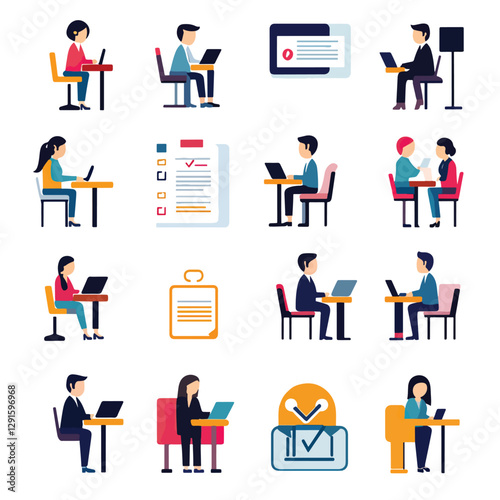 Interview and Media Icon Set — Job and Communication. Editable stroke. Colored vector illustration.