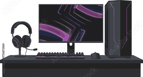 A minimalist black and white computer tower and monitor, representing desktop computing, office technology, and digital workstations.