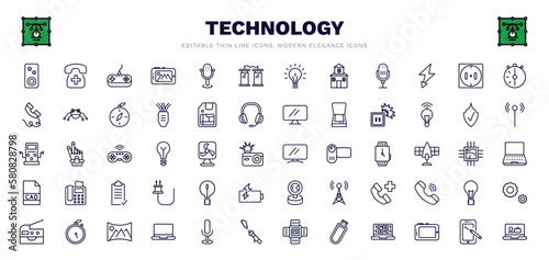 set of 10 outline web technology icons such as vintage digital camera, lcd screen, technology, add call, battery charge almost full, client, horizontal tablet vector icons for report, presentation,