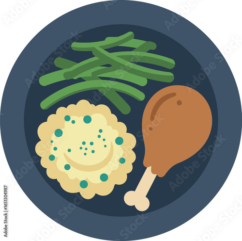Thanksgiving dinner with mashed potatoes and turkey – festive holiday food illustration