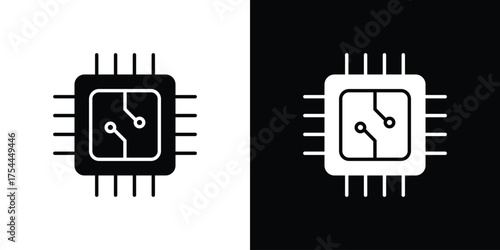 Set of two icons representing an integrated circuit chip, one in outline and one in solid black