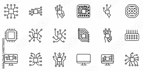 Chip line icon set. Processor, CPU, and microchip symbols. Editable stroke. Technology hardware pictogram collection for UI, UX, web and app design. Vector illustration.