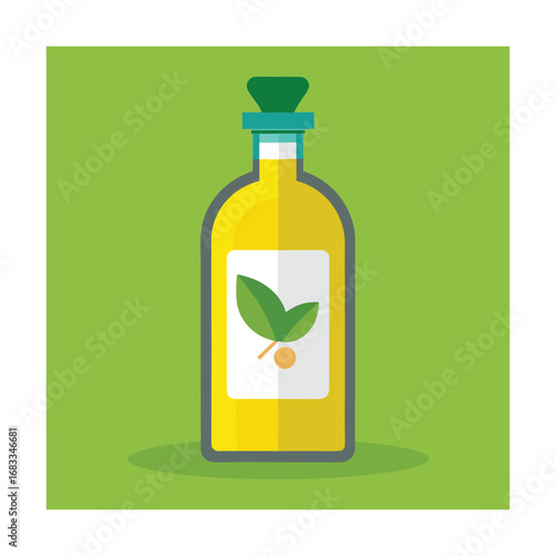 Sesame oil, seeds and sesame plant. Sesame seed oil. Food. Illustration, vector