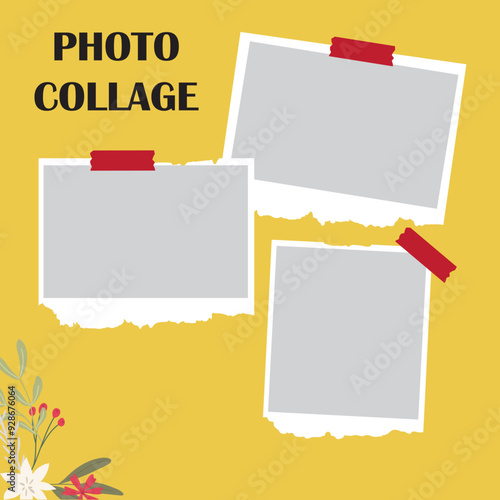 Photo collage template, empty mockup for photo montage. Photo frame collection or moodboard, mosaic pictures gallery for presentation, vector illustration