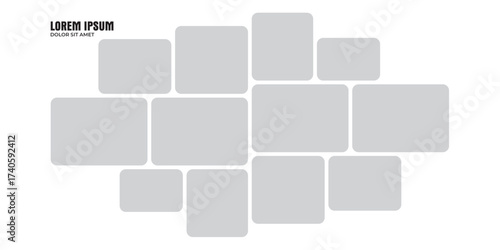 Mood board or image grid template. Grey mosaic art collage arrangement. Photo frame horizontal composition. Wall gallery layout design concept for presentation, poster, mockup, banner, flyer. Vector