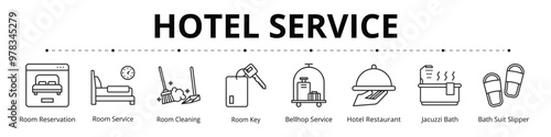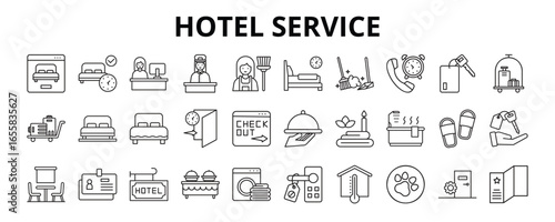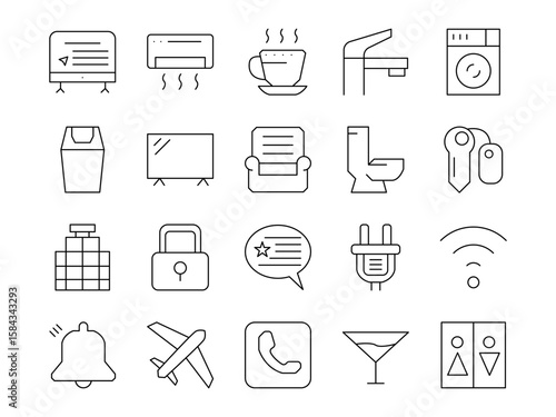 Clean editable hotel service vector icons in line art, ideal for hospitality, travel, branding, UI and print design